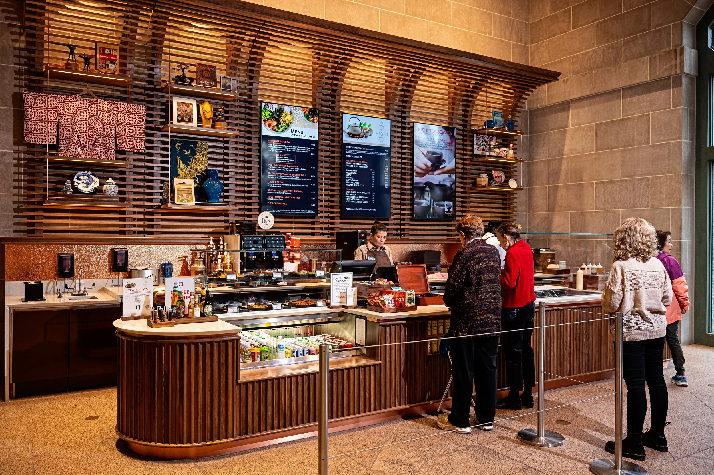 A temporary coffee stand in 2018 sparked the desire for a permanent cafe in the space, and architrave p.c. launched a feasibility study in 2022 with full design efforts following in 2023. The Moongate Cafe in the National Museum of Asian Art is a successful result of coordination between administrative and operational expertise, creative MEP routing, and careful architectural detailing.